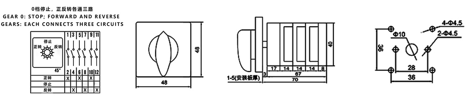 Zuhause / Produkt / Kombinationsschalter / ZHUCO HZ5B-10/D010.3 Vorwärts-, Stopp-, Rückwärts-, Dreistellungs-, Dreiteil-Kombinationsschalter