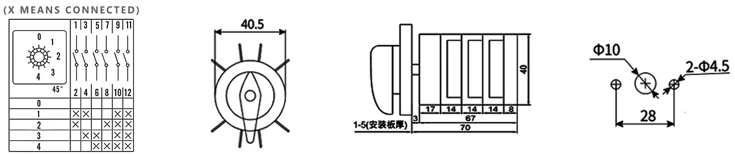 Zuhause / Produkt / Kombinationsschalter / ZHUCO HZ5B-20/3.EEE 0-1-2-3-4 Fünfstellungs-Kombinationsschalter mit drei Abschnitten