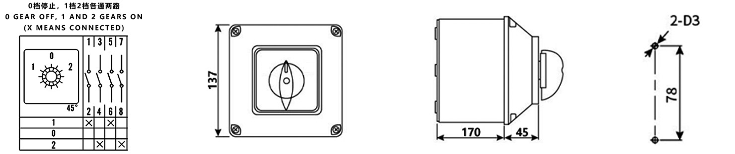 Zuhause / Produkt / Universeller Umschalter / Gehüllter Schalter / ZHUCO SZW26-125/D202.2BF Hochstrom-IP65-Schutzübertragungsschalter
