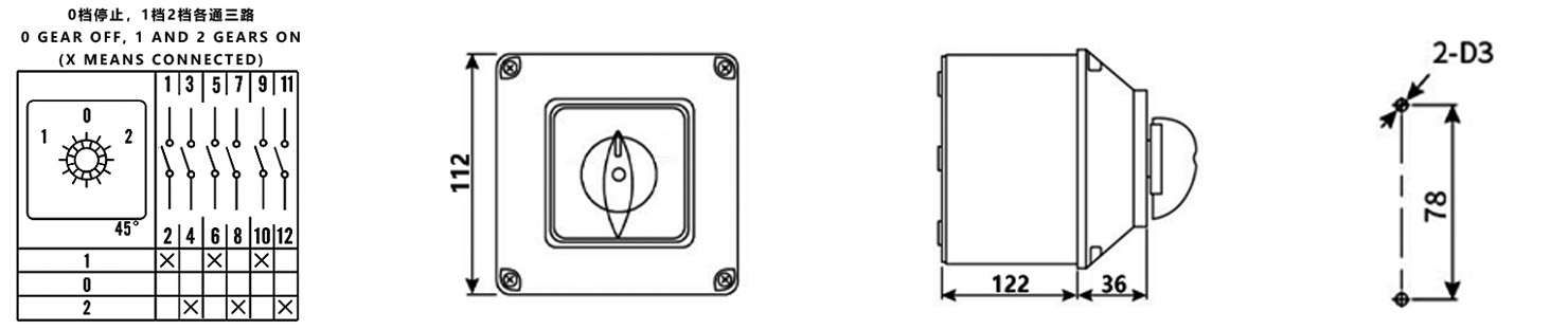 Zuhause / Produkt / Universeller Umschalter / Gehüllter Schalter / ZHUCO SZW26-32/D303.BF 1-0-2 dreiteiliger 3-Positionen-Umschalter mit Schutzbox