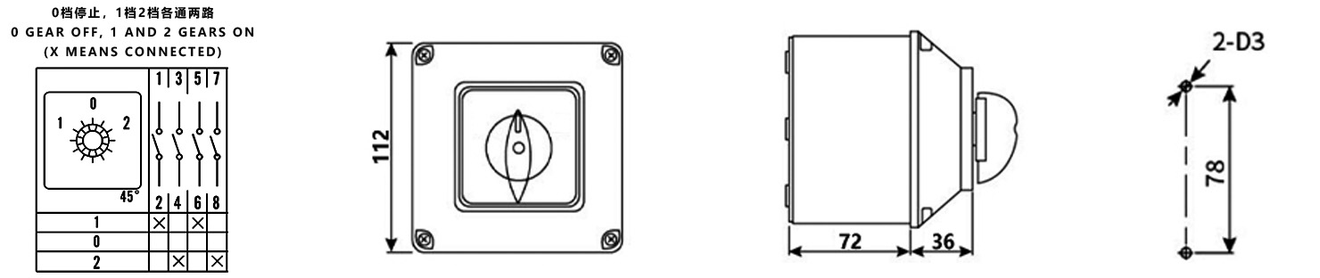 Umschaltung von Hochleistungsgeräten für den Außenbereich/in rauen Umgebungen: Dient als Haupt-/Notstromumschalter oder Betriebsartenauswahlschalter für Wasserpumpstationen im Außenbereich, große Ventilatoren, Klimaanlagen, elektrische Tore und Beleuchtungsverteilungssysteme im Außenbereich. Sein IP65-Schutz gewährleistet einen zuverlässigen Betrieb in Regen- und Staubumgebungen.