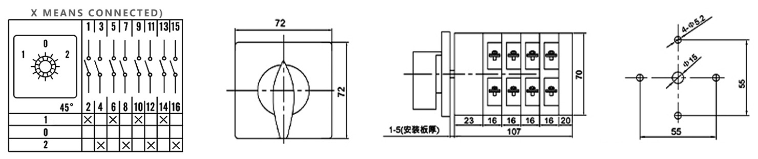 Zuhause / Produkt / Universeller Umschalter / LW5D Leistungssteuerschalter / ZHUCO LW5D-16/D1050.4 Dreistellungs-Umschalter mit vier Abschnitten