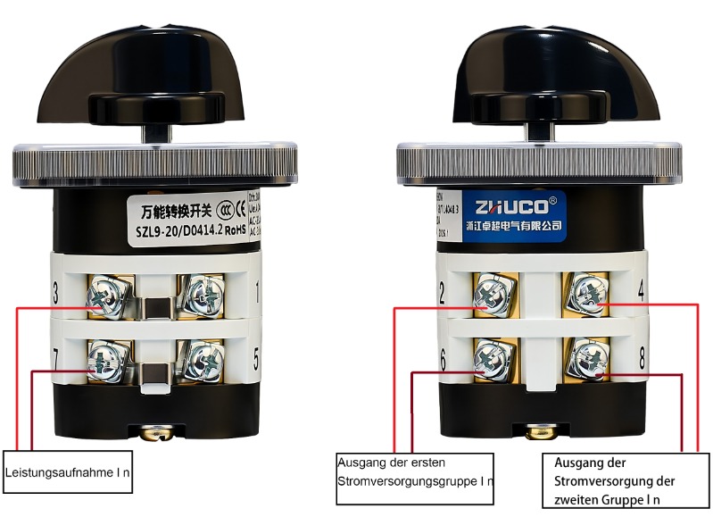 Der SZL9-20/D0414.2 ist ein zweipoliger Umschalter mit drei Positionen und einem Nennstrom von 20 A. Durch Dreistellungsschaltung wird ein Stromeingang in zwei Stromausgänge aufgeteilt, wodurch zwei Geräte mit Strom versorgt werden. Wenn der Griff in Position 1 gedreht wird, wird der erste Satz LN-Kontakte verbunden; wenn er in Position 2 gedreht wird, wird der zweite Satz LN-Kontakte verbunden; und die mittlere Position O trennt alle Kontakte. Es eignet sich für Wechselstrom-50-Hz/60-Hz-Stromkreise mit einer Nennbetriebsspannung ≤440 V und einer Bemessungsisolationsspannung von 690 V. Es besteht aus flammhemmenden und hochtemperaturbeständigen Materialien und bietet eine gute Isolationsleistung, Sicherheit und Haltbarkeit. Mit Kontakten aus Silberlegierungen und verdickten Kupferkomponenten bietet es eine stabile Leitfähigkeit und eine lange Lebensdauer. Mit flexiblen Installationsoptionen und anpassbarem Paneltext erfüllt es die täglichen Betriebsanforderungen verschiedener Geräte. Es kann in Verteilerkästen und Schaltschränken zur Haupt- und Hilfsstromkreisschaltung eingesetzt werden und ermöglicht Übergänge zwischen verschiedenen Betriebszuständen. Die strukturelle Gestaltung legt Wert auf Praktikabilität und einfache Bedienung. Der Schalter verfügt über eine rationelle Innenanordnung und einen stabilen Kontakteingriff und ist damit ein umfassender Ersatz für andere Umschalter.