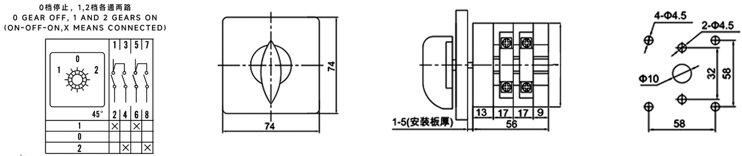 Zuhause / Produkt / Universeller Umschalter / SZL9 Multifunktions-Leistungsumschalter / ZHUCO SZL9-25/D0414.2 25A/2P Zweipoliger Dreistellungs-Umschalter 102