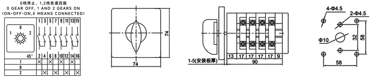 Zuhause / Produkt / Universeller Umschalter / SZL9 Multifunktions-Leistungsumschalter / ZHUCO SZL9-25/D1050.4 25A/4P Vierpoliger 102-fach-Wahlschalter mit drei Positionen