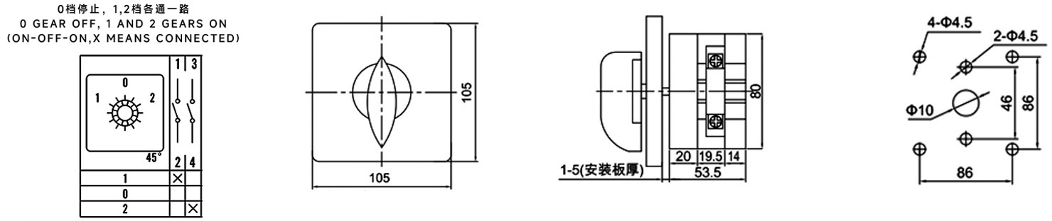 Zuhause / Produkt / Universeller Umschalter / SZL9 Multifunktions-Leistungsumschalter / ZHUCO SZL9-50/D0083.1 50A/1P Einpoliger 102-fach-Wahlschalter mit drei Positionen