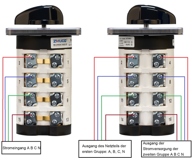 Der SZL9-75/D1050.4 ist ein Schalter der Spezifikation 75 A, der mit einer vierteiligen Struktur mit drei Positionen konfiguriert ist. Ein Stromeingang ist in zwei Stromausgänge aufgeteilt, sodass zwischen zwei Geräten umgeschaltet werden kann. Wenn der Griff in Position 1 gedreht wird, wird der erste Satz ABCN-Anschlüsse angeschlossen; wenn er in Position 2 gedreht wird, wird der zweite Satz ABCN-Anschlüsse angeschlossen; und die mittlere Position 0 trennt alle Verbindungen. Durch Positionsumschaltung können eine mehrzeilige Statusanpassung und -auswahl erreicht werden. Das Produkt wird häufig in Stromverteilungssystemen oder Schaltschränken verwendet. Seine Gesamtstruktur ist vernünftig, die Betriebsmethode klar und es erfüllt die täglichen Anforderungen elektrischer Systeme.
