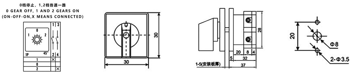 Zuhause / Produkt / Universeller Umschalter / SZW26 Multifunktions-Umschalter / ZHUCO SZW26-10/D101.1 1-0-2 Dreistellungs-Einabschnittsumschalter