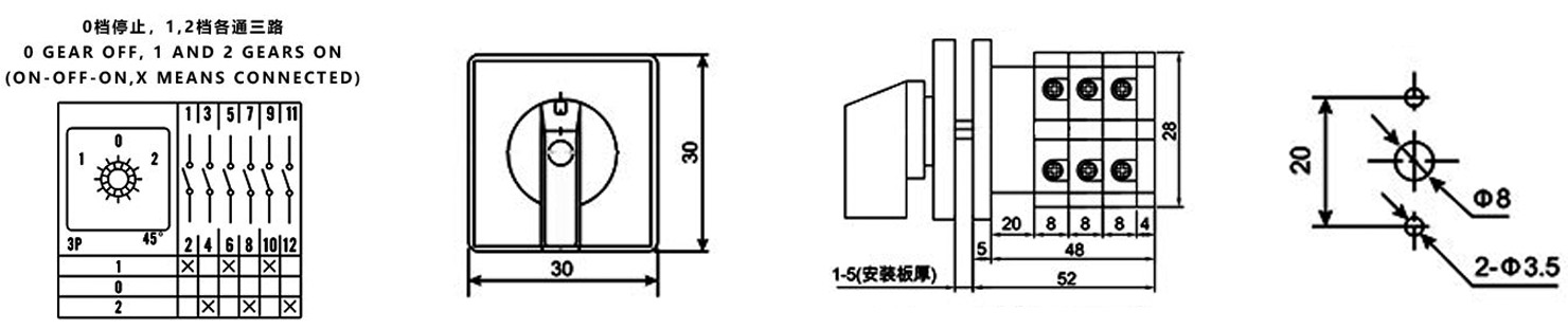 Zuhause / Produkt / Universeller Umschalter / SZW26 Multifunktions-Umschalter / ZHUCO SZW26-10/D303.3 1-0-2 Dreistellungs-Dreiteiler-Umschalter