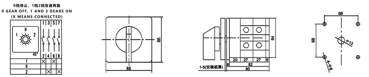 Zuhause / Produkt / Universeller Umschalter / SZW26 Multifunktions-Umschalter / ZHUCO SZW26-125/D202.2 1-0-2 Dreistellungs-Zweiteil-Umschalter
