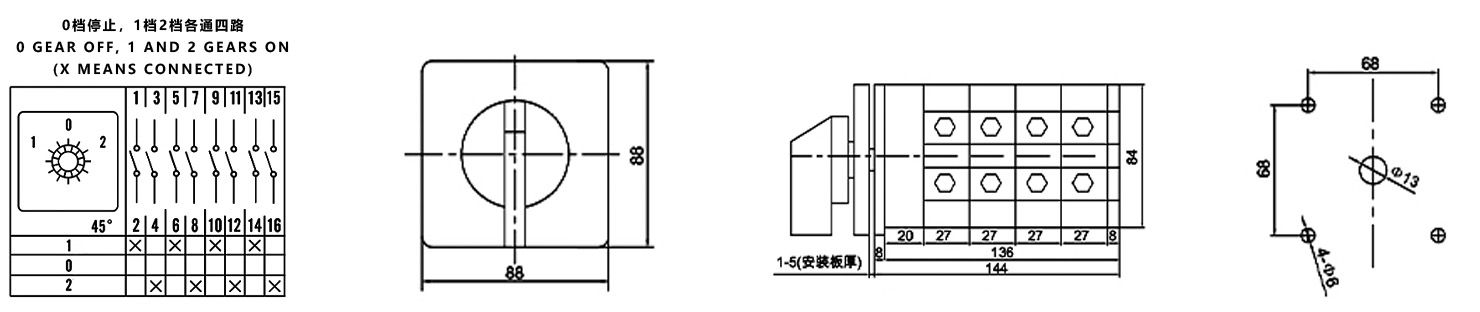 Zuhause / Produkt / Universeller Umschalter / SZW26 Multifunktions-Umschalter / ZHUCO SZW26-125/D404.4 1-0-2 Vierteiliger Hochstrom-Umschalter mit drei Positionen