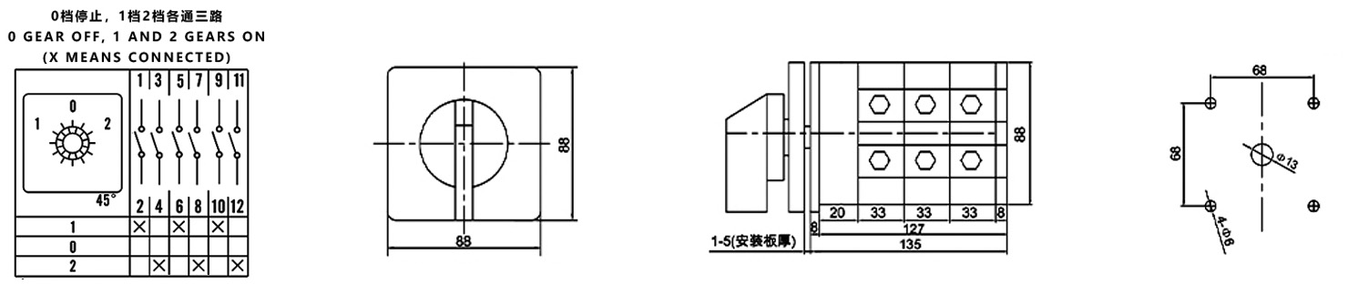 Zuhause / Produkt / Universeller Umschalter / SZW26 Multifunktions-Umschalter / ZHUCO SZW26-160/D303.3 1-0-2 Dreistellungs-Hochstrom-Umschalter mit drei Abschnitten