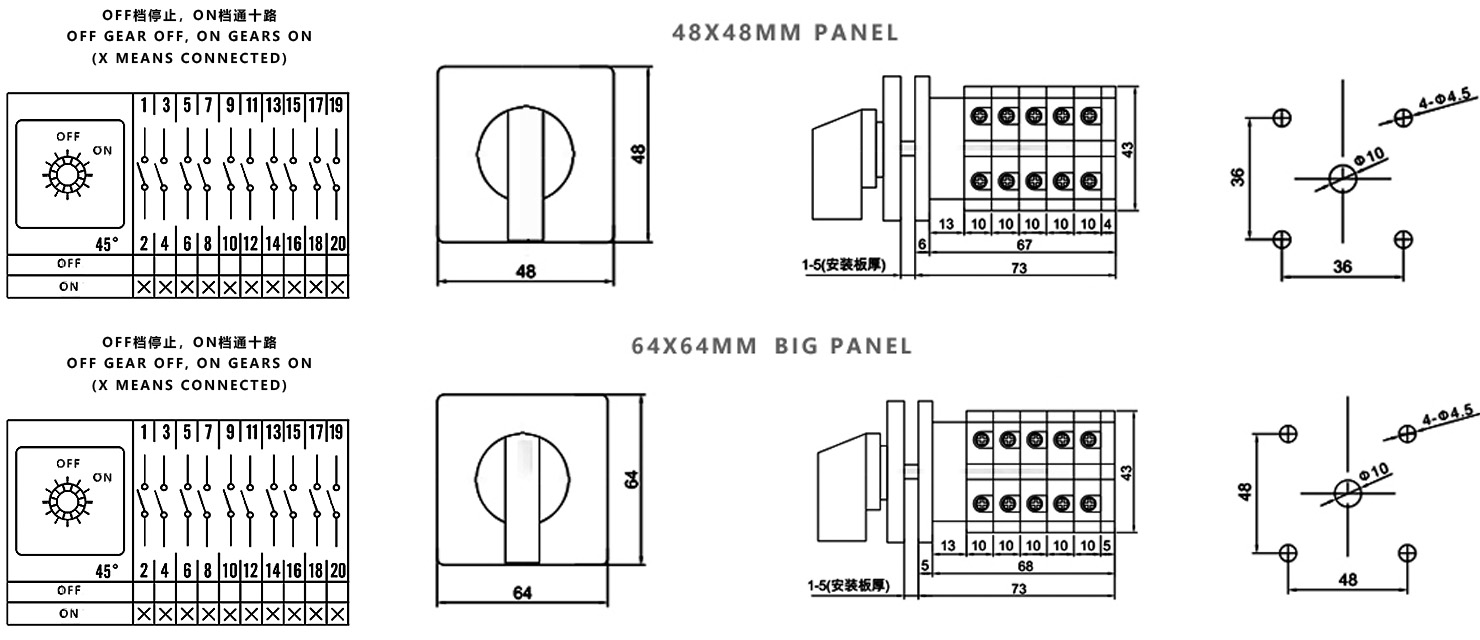 Zuhause / Produkt / Universeller Umschalter / SZW26 Multifunktions-Umschalter / ZHUCO SZW26-20/COA.5 AUS-EIN Zweistelliger fünfteiliger Ein-/Ausschalter