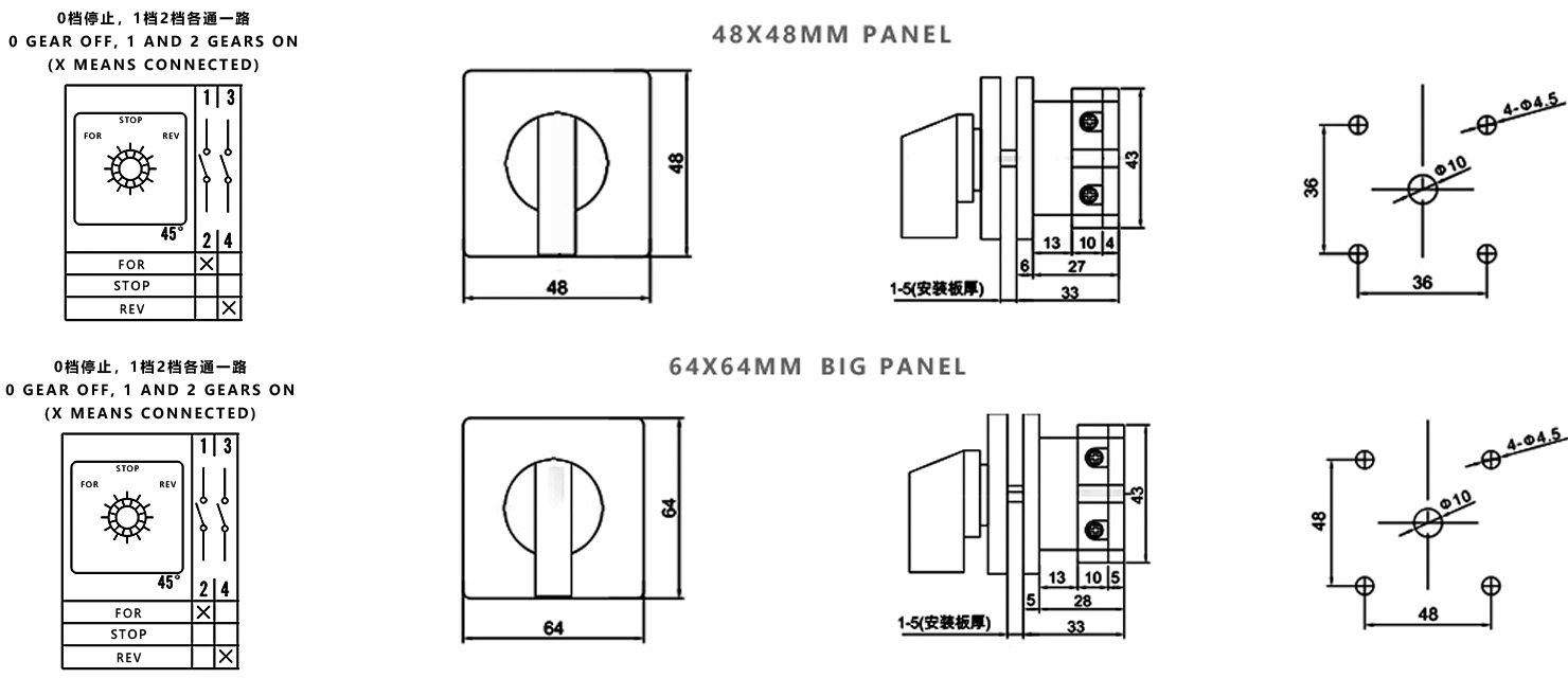 Zuhause / Produkt / Universeller Umschalter / SZW26 Multifunktions-Umschalter / ZHUCO SZW26-20 D101.1 FOR-STOP-REV Dreistellungs-Einteil-Umschalter