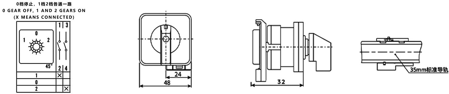 Zuhause / Produkt / Universeller Umschalter / SZW26 Multifunktions-Umschalter / ZHUCO SZW26-20/D101.1-B11R 1-0-2 Dreistellungs-Umschalter für die Schienenmontage