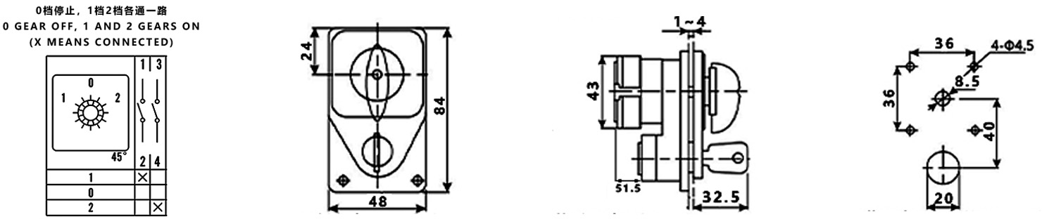 Zuhause / Produkt / Universeller Umschalter / SZW26 Multifunktions-Umschalter / ZHUCO SZW26-20/D101.1YS Dreistellungs-Einabschnittsumschalter mit elektronischer Verriegelung