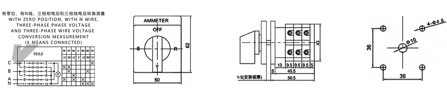Zuhause / Produkt / Universeller Umschalter / SZW26 Multifunktions-Umschalter / ZHUCO SZW26-20/YH5.3HH Langes silbernes Panel, roter Griff, siebenstufiger Dreikanal-Spannungsumschalter
