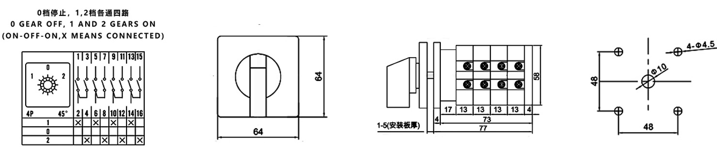 Zuhause / Produkt / Universeller Umschalter / SZW26 Multifunktions-Umschalter / ZHUCO SZW26-32 D404.4 1-0-2 Vierteiliger Umschalter mit drei Positionen