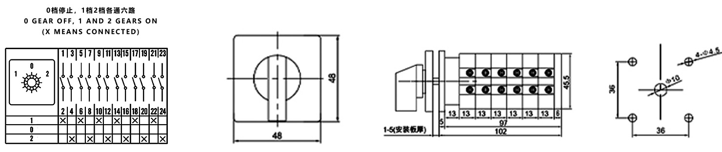Zuhause / Produkt / Universeller Umschalter / SZW26 Multifunktions-Umschalter / ZHUCO SZW26-63/D606.6 1-0-2 Dreistellungs-Umschalter mit sechs Abschnitten