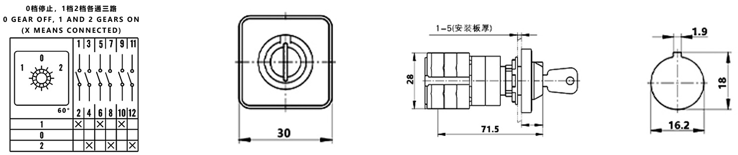 Zuhause / Produkt / Universeller Umschalter / SZW26 Multifunktions-Umschalter / ZHUCO SZW26X-10C/D303.3Y 1-0-2 Dreistellungs-Dreiteiler-Umschalter mit kompakter Verriegelung und Einzellochmontage